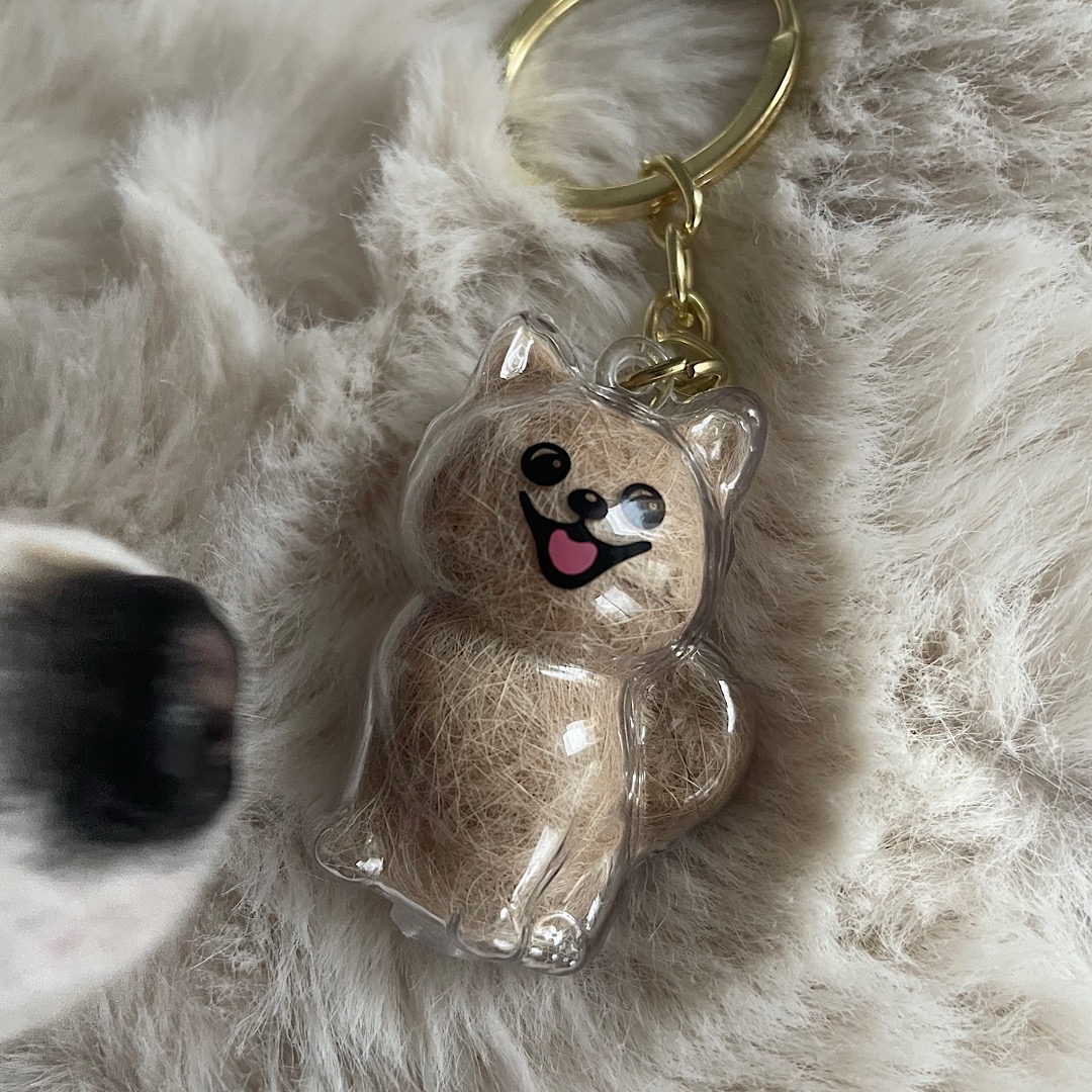 け 換毛期ってやつ?うちの子になって2回目の爆抜け期間スムチーだから短い毛があちこち抜け落ちコロコロが手放せない、、1回目の抜け期の時に次男にせがまれ買った毛を入れるキーホルダー1回目の途中から収集して今回で満タンになって完成入れ物は多分ポメっぽいけど1番うちの子に似てたので